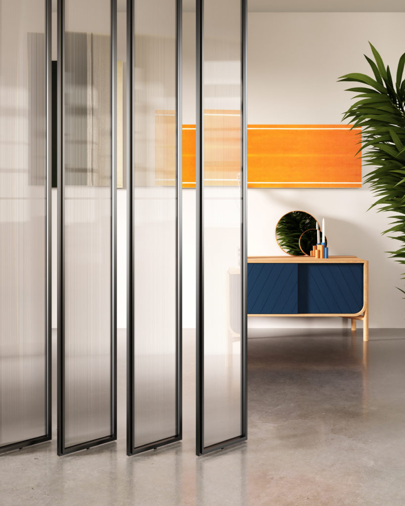 Новые и совершенно уникальные дизайнерские реечные перегородки от Sofia от 2300 мм до 3000 мм со стеклом в изящном алюминиевом профиле помогут вам создать множество самых разных сценариев освещения и зонирования. Вариаций дизайна масса. Выбирайте стационарный или поворотный механизм, а также цвета и формы стекол, в зависимости от того, какое вы любите освещение и какие зоны желаете создать.