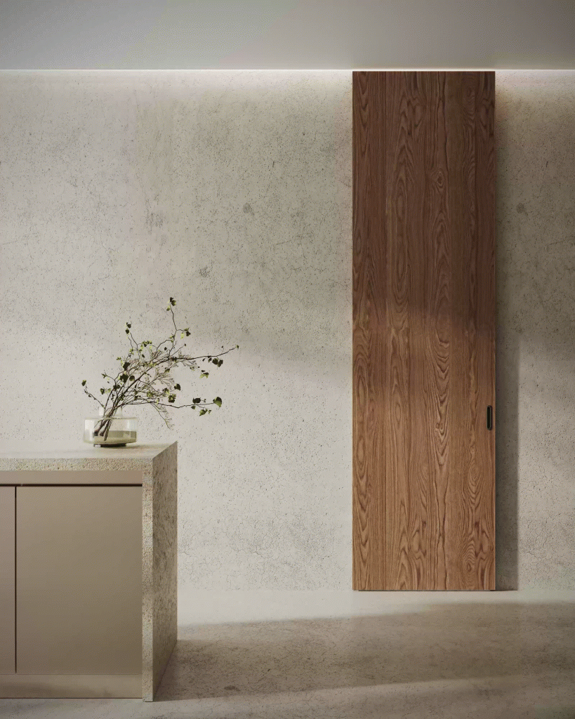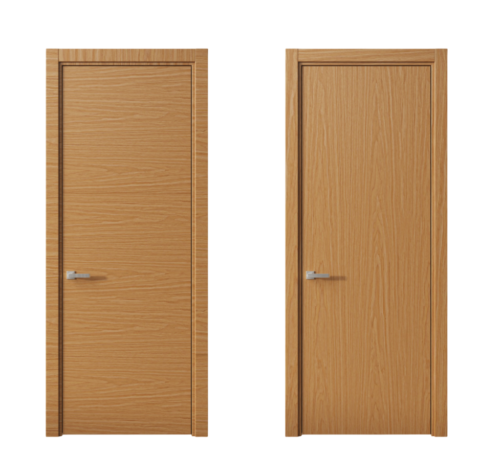 Новая коллекция шпонов доступна к выполнению на глухих стандартных полотнах любой высоты, но не выше шести метров. Про наши компетенции в изготовлении шестиметровых дверей можно почитать здесь.