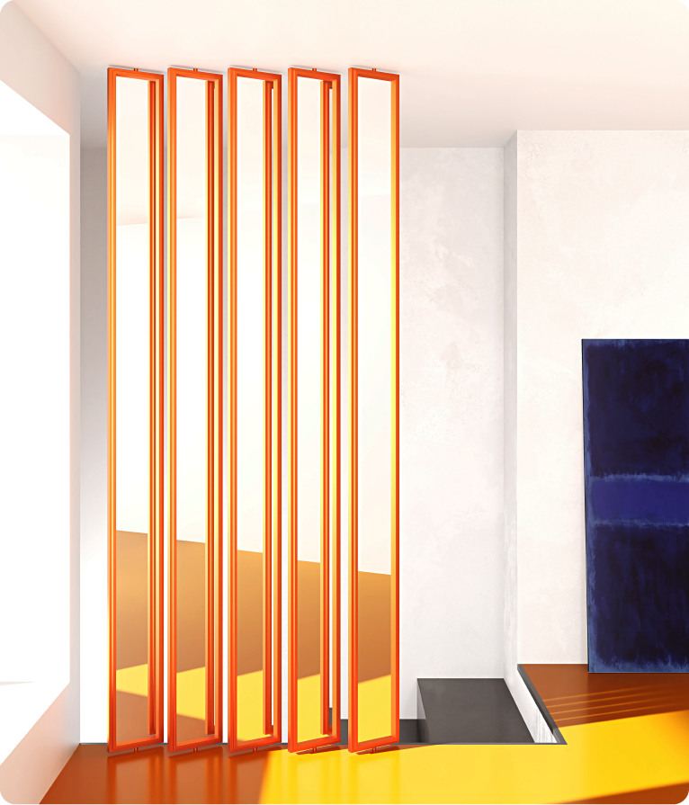 Мы разработали новое направление, где по шкале RAL или NCS возможно выкрасить профиля алюминиевой межкомнатной перегородки, алюминиевой реечной перегородки, зеркал и коробов Invisible.